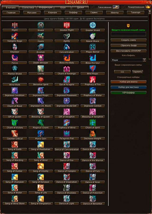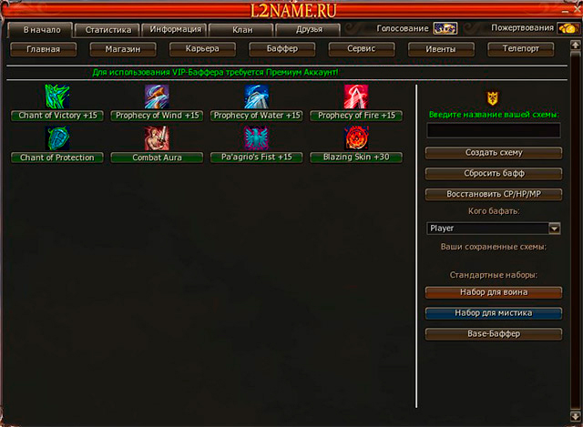 Баффер с богатым ассортиментом, возможностью сохранения схем и восстановлением CP/MP/HP.