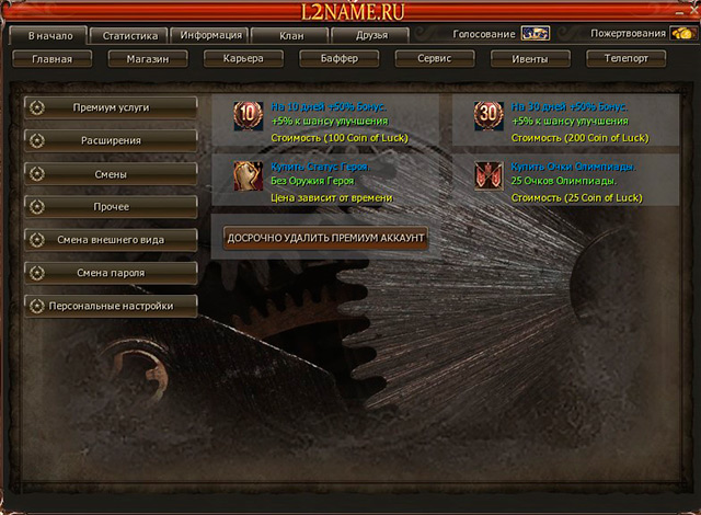 - Премиум аккаунт дает +50% ко всем рейтам. Так же будет давать бонус к успешному улучшению +5% на все, включая футболку Ольфа и +5% к успешному крафту МВ (он же шанс двойного крафта).