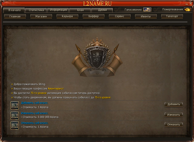 - Выдаваемый уровень при создании персонажа 76. Выдаваемый Саб-Класс 76.