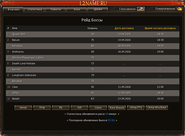 Эпические Боссы, Baium и Queen Ant будут иметь уровень согласно ПТС.