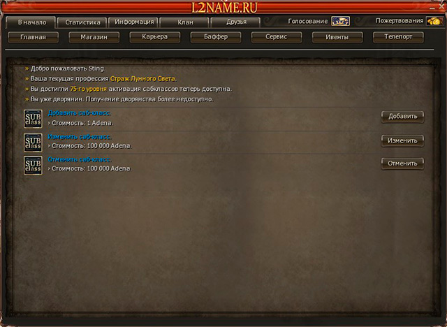 - Выдаваемый уровень при создании персонажа 1. Выдаваемый Саб-Класс 40.