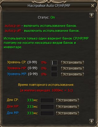 # Вызвать окно настроек АвтоCP/HP/MP командой .autocp