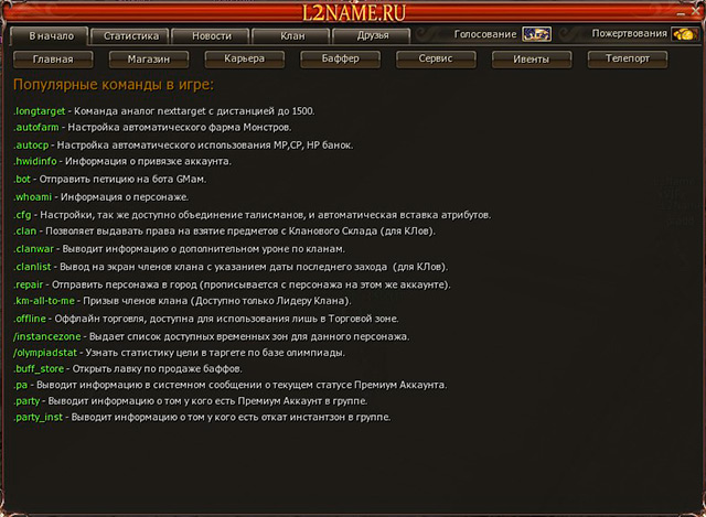 # На главной странице Alt+B Вы найдете множество удобных серверных команд: