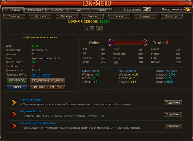 - Safe Enchant +3, Шанс улучшения на все предметы = 50%, Премиум Аккаунт увеличивает шанс на +5%.