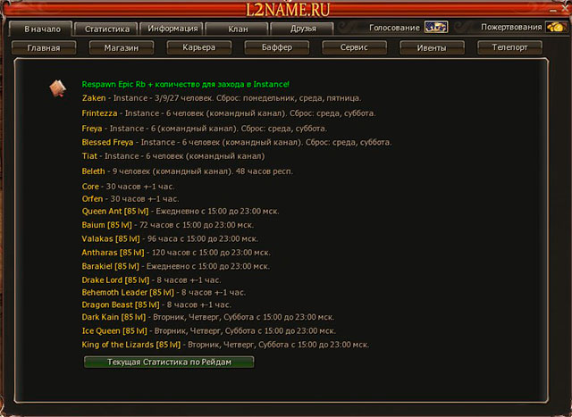 * Эпические Боссы: Baium, Queen Ant, Barakiel 85 Lv.