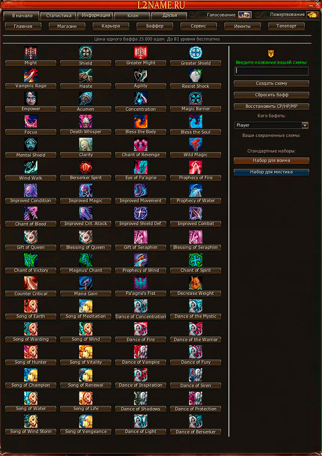 * 30+4 слотов под бафы и 14 под песни и танцы, 11 под дебафы. Все бафы будут по 60 мин.