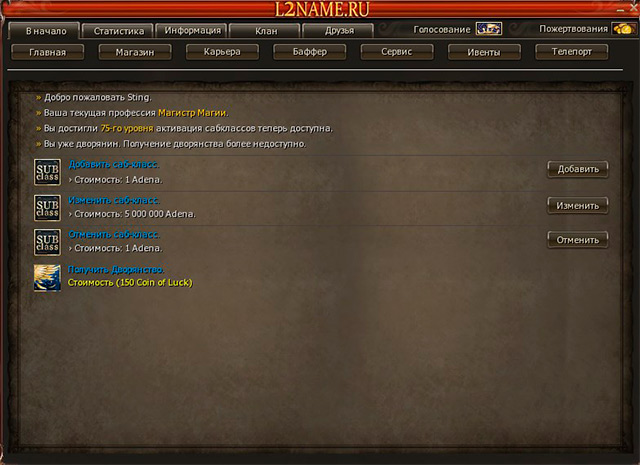 - Выдаваемый уровень при создании персонажа 10. Выдаваемый Саб-Класс 40.